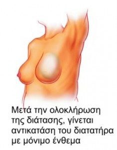 • Διαδικασία σε δύο στάδια: Tissue Expander (διατατής ιστών) τοποθετείται στο πρώτο στάδιο και ακολουθεί η αντικατάστασή του από μόνιμο ένθεμα σιλικόνης στο δεύτερο στάδιο.